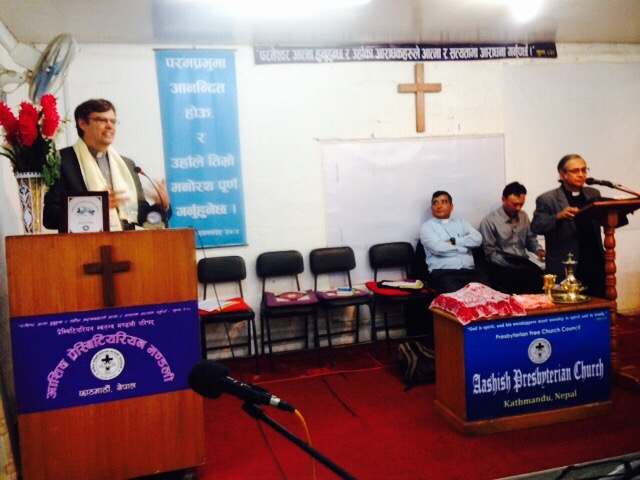 During the “Welcome Programme” we all went to the front and were introduced. Eight young girls came up, one at a time, to place Katak scarves, a Nepali gesture of respect, around our necks. What Mahendra said about me was that I was the “oldest friend of the church and of Nepal.” I was hoping that he meant that I had been their friend for a long time, not that I was old.
