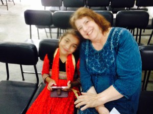 We had a few minutes to greet people, many whom I know from previous visits. We stood in front and practiced the two songs we should sing later in the service. Our friends Nissa and Ruby (mother and child) came to church with us as they always do. They are Hindu and don’t always understand what is going on but they are always welcomed and seem to enjoy it. Another member of our Nepal “family”, Suraj, is a taxi driver and brought them down to Patan from where they live in the Thamel neighborhood of Kathmandu. Ruby is growing up fast, now 12 years old, but still a bundle of energy. She ran down the alley to our hotel and leapt into my arms. She did the same when she saw Carol. She can’t keep her arms off Carol, hugging her leg, holding her hand or stroking her arms and it took no time to transfer some of that affection to others in our group. Ruby used to run amok during church but this time she was actually rather quiet and listened to what was happening, especially during the singing. I am sure that it has helped that she is older and has better English.