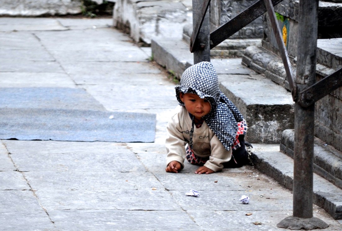 As soon as we hit the pavement, we encountered Rubi, a four-year-old wearing a red dress and an attitude that belied her small size. She was little, but her energy level was a fair match for her environs. Rubi was in constant motion, darting about like a mosquito, seemingly everywhere at once. Just by noticing her we attracted her attention and she latched onto us. We fell into a conversation, or what might pass for one between two people who spoke only English and a three year old who didn’t. Despite the language barrier, Rubi talked incessantly and led us to her mother, Nissa, who made a living selling souvenirs to tourists. Nissa’s place of business was the sidewalk and her wares were spread out on the ground, just out of the way of the street traffic. One thing led to another and we soon established a routine of spending a little time with Rubi and Nissa before we left Thamel for the day and when we returned in the afternoon.