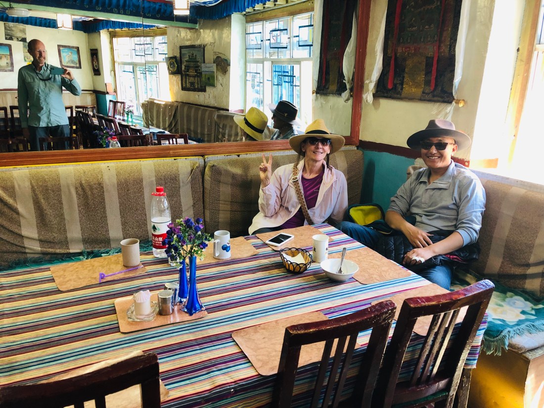 During the long hours on the road or at meals we have conversations about the whole range of things. One time, Lobsang referred to someone who was deceased as a “gone guy.” (I liked that). He is as curious about America and Christianity, as we are about Tibet and Buddhism. We’ve talked a lot about religion and philosophy. It’s hard to explain Grace to a Buddhist, but Lobsang has already done a lot of self study and is open to the basic concepts. He knows of C.S. Lewis only from watching the Narnia movies, but I suggested Mere Christianity and he wrote it down. Mostly, we look for commonality among cultures, religions and people.