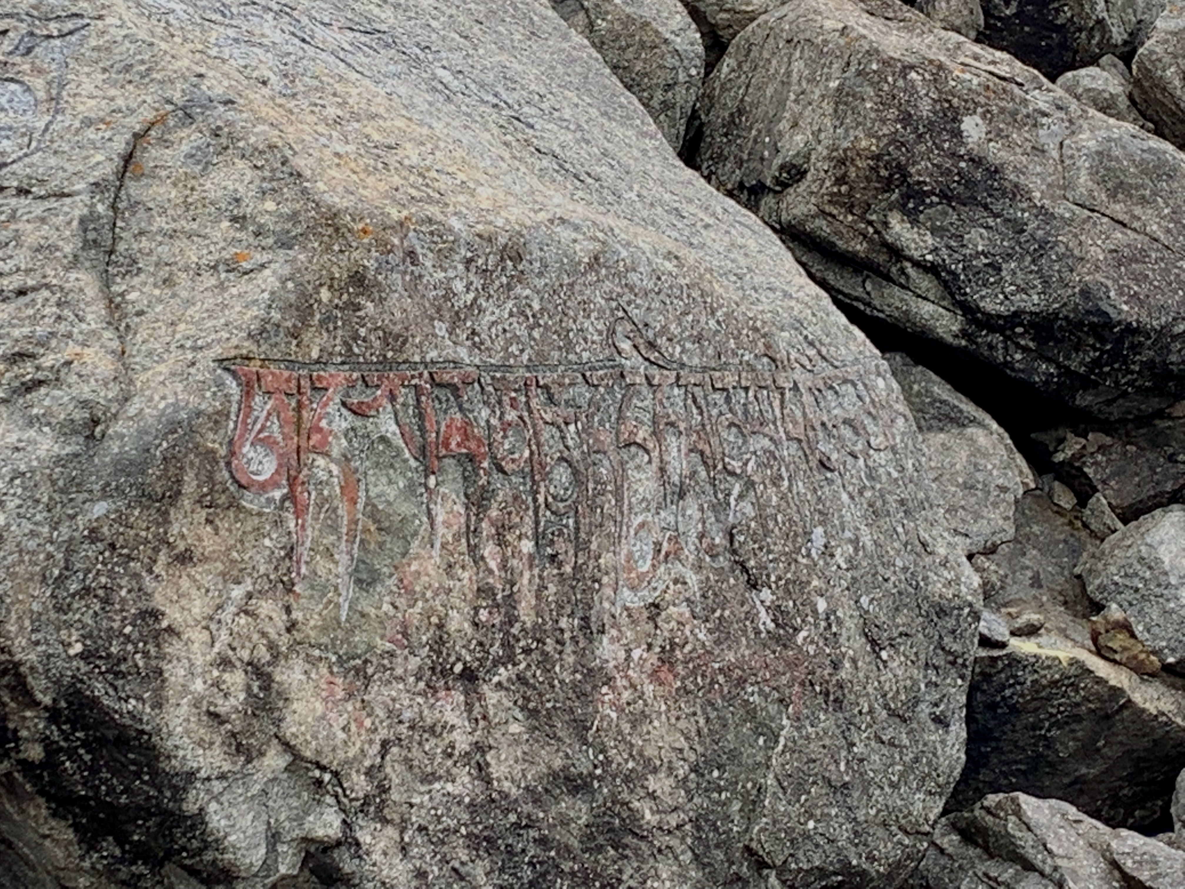 Mani (prayer) stones are everywhere I look, accumulated over centuries. Carved on the stones is the mantra “Om Mani Padma Hum.” I will leave the translation to scholars but a mantra is not for the thinking mind anyway.