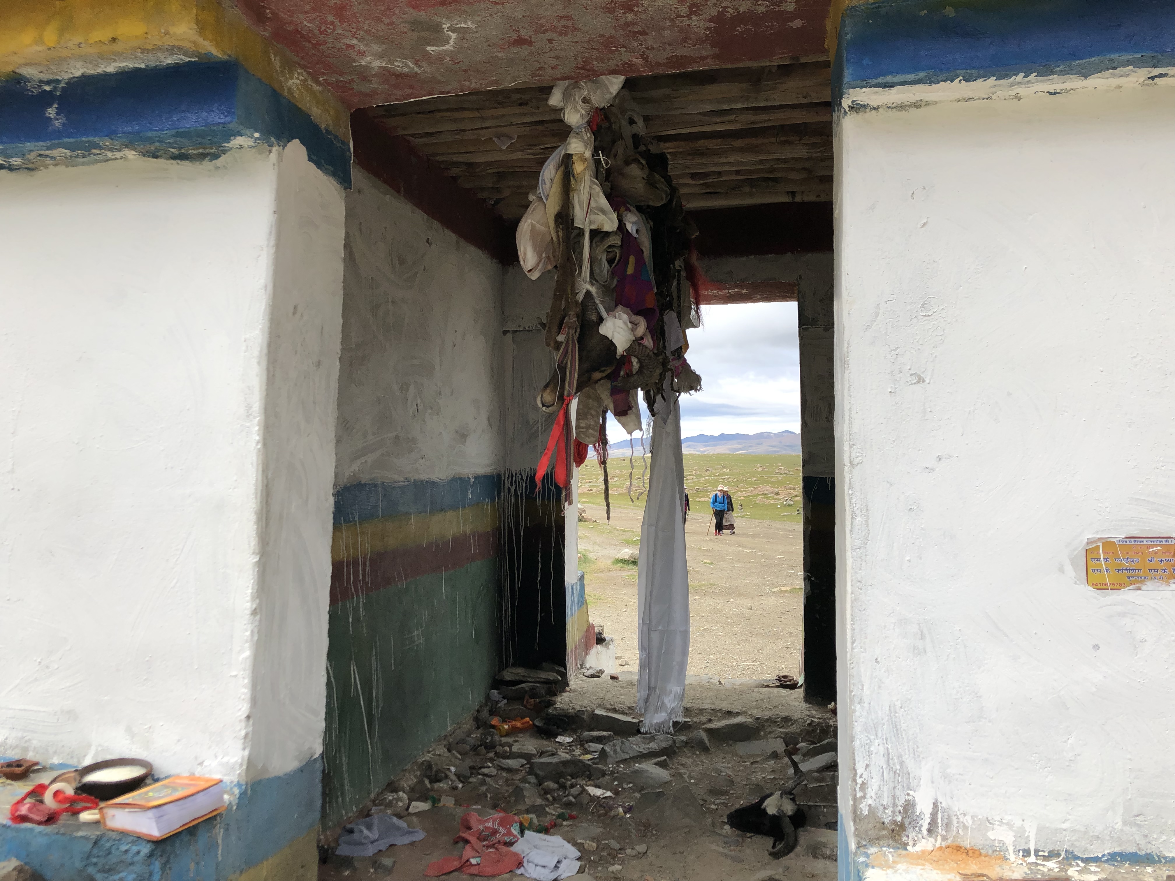 The inner chorten is strewn with dead goat and sheep skulls and a bell hangs from the ceiling that we toll as we walk through. In keeping with tradition, we leave behind something of ourselves: a lock of Caroline’s hair and a chunk of my beard.