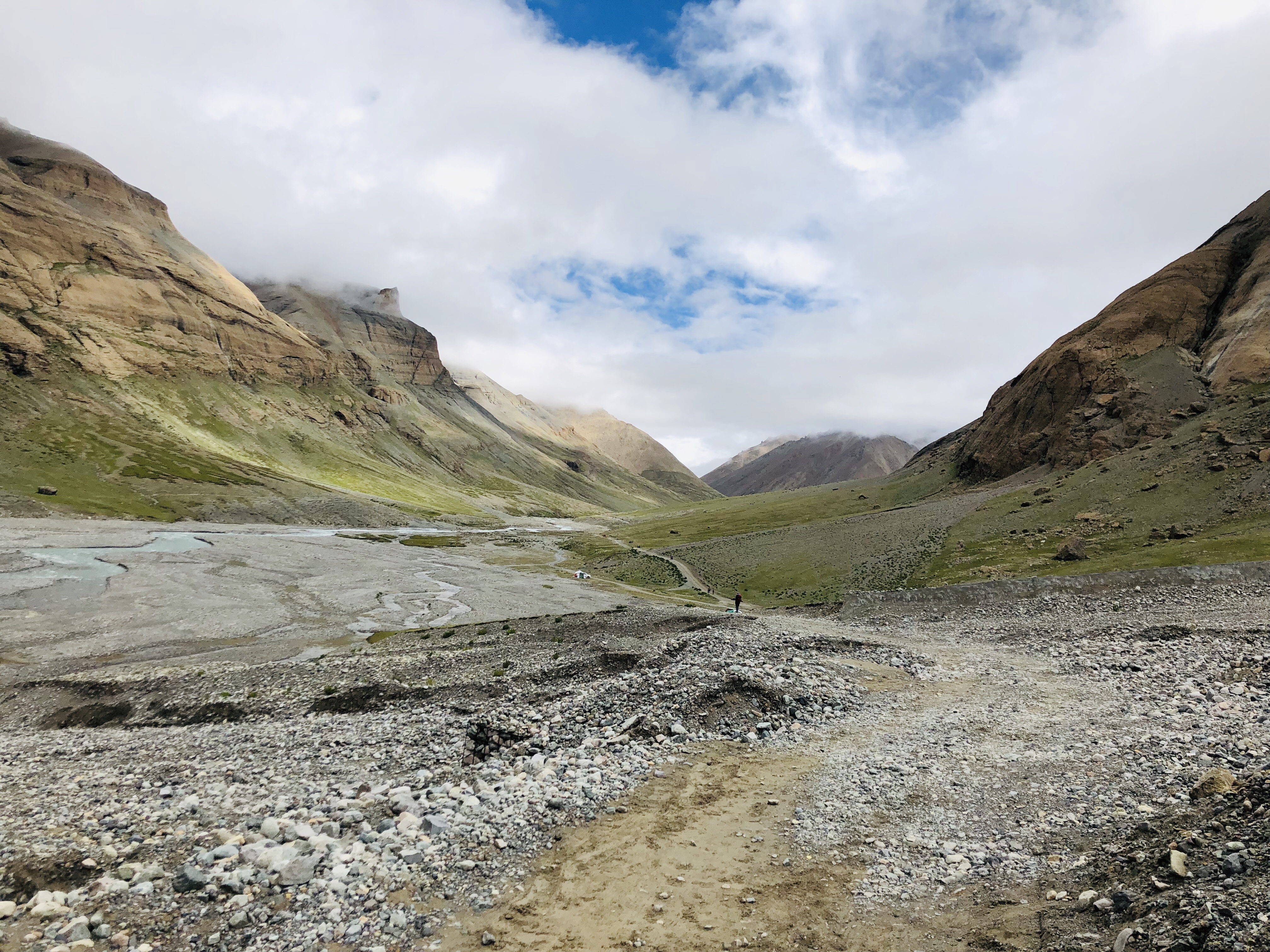 We share our kora with many other people, hundreds of them stretched out over the thirty-two miles, like a giant strand of prayer beads or, at night, a string of tiny white Christmas tree lights encircling the mountain. They are mostly Tibetan, with a few Indians. We don’t encounter a single other person from the west. The trek, in some ways, is a solitary pursuit—nobody but myself can get me to the top of Drolma La pass— but at the same time we are a community of pilgrims, separated by wide disparities in background, culture and economic status, but united in a common endeavor, a goal, a dream. The usual boundaries break down, replaced by the universal sign of human connection, a smile, and a hearty “Tashi Delak”, the Tibetan version of “Namaste.”