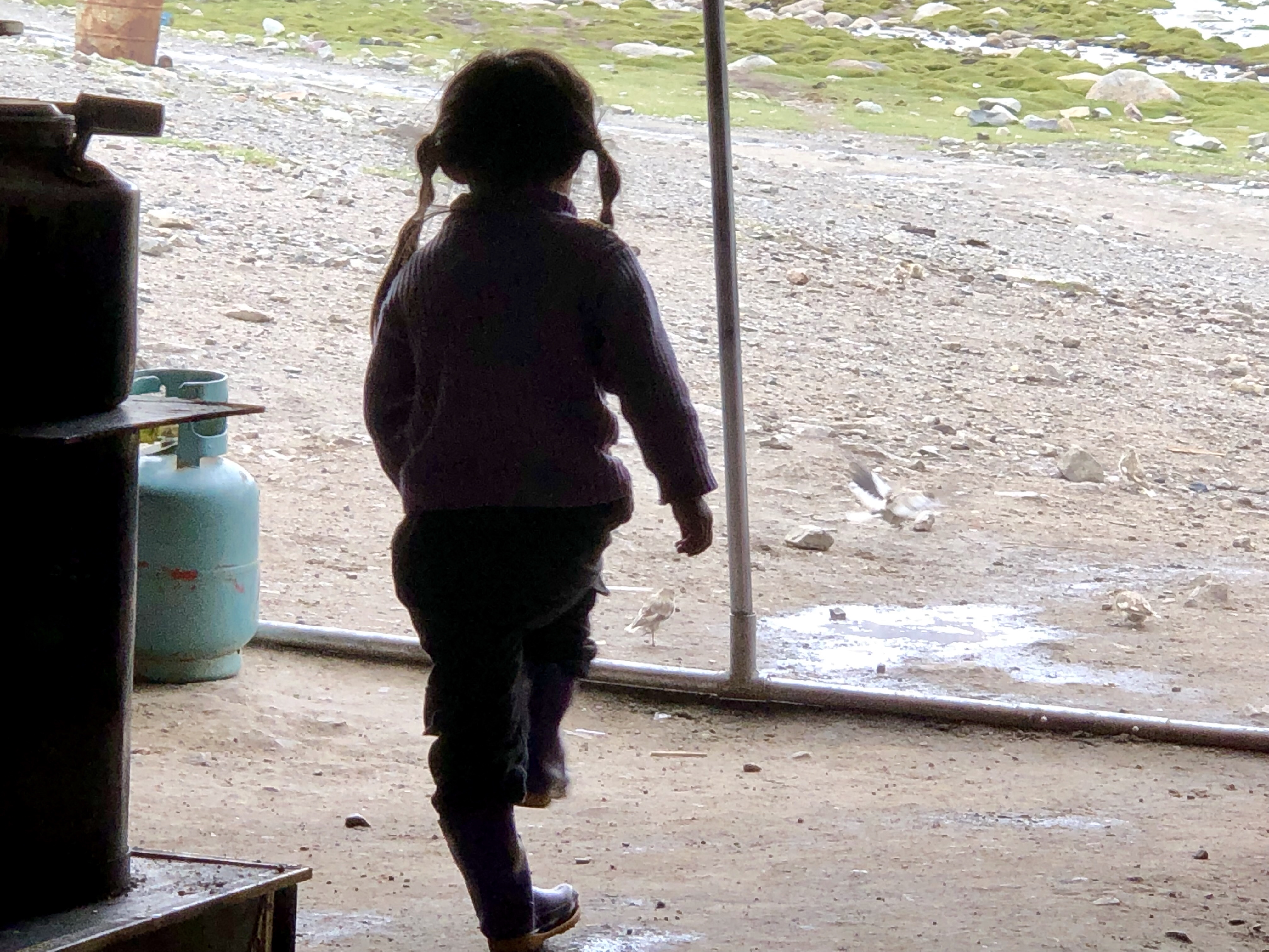 We fall into stride with them for a while and Lobzang, as is his nature, starts a conversation. After awhile we walk on ahead. The next morning we start our ascent of Drolma La Pass two hours before daybreak and have descended the other side, nearly to the valley floor, when we come upon the same momma and daughter— they have gotten that far ahead of us again. It is an amazing testament to what they say about age being a function of the mind and of one’s attitude rather than the body alone. It also puts in perspective the American ideal of living in a house where everything is on one floor.