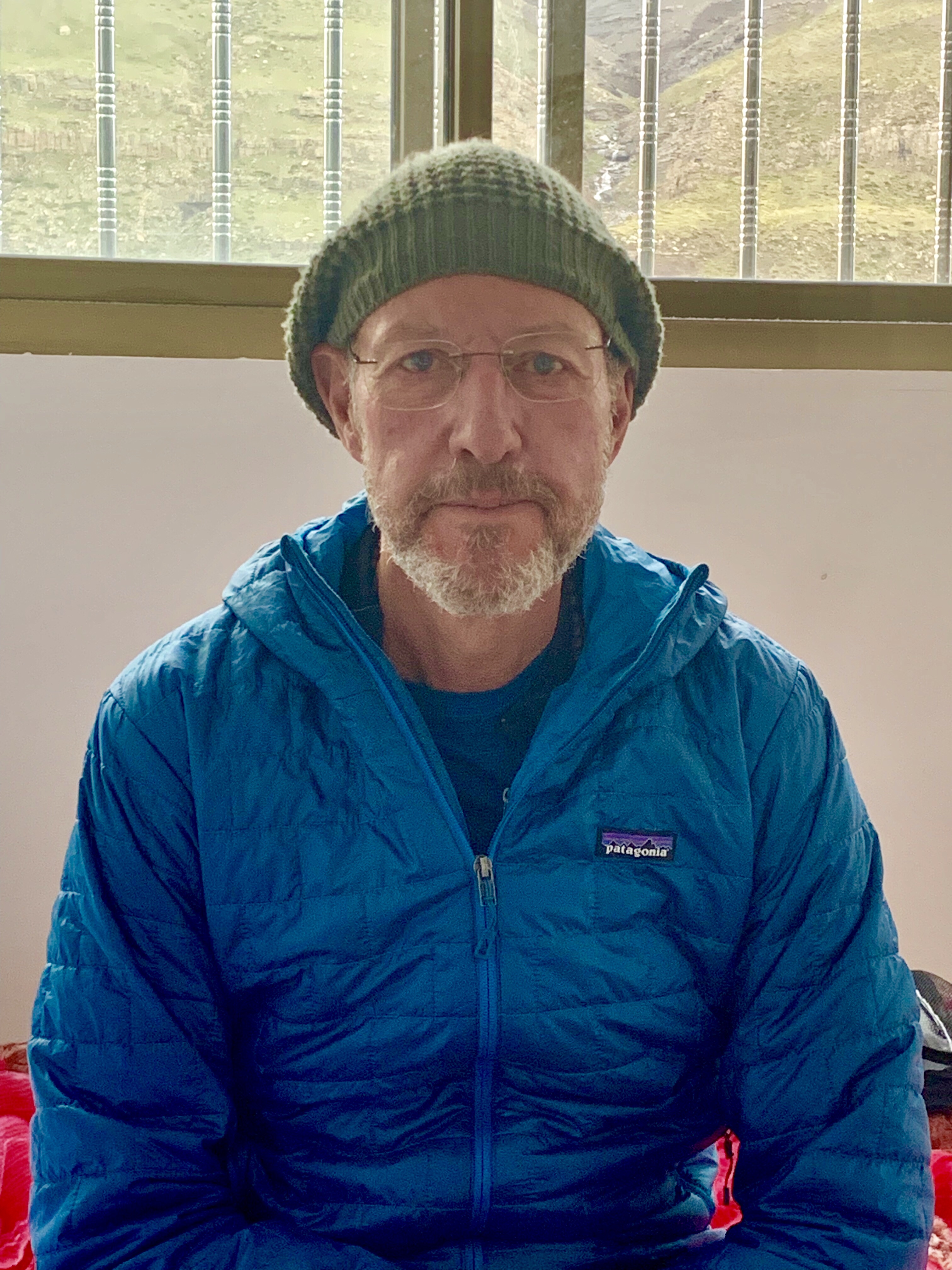 We leave the tea house in a steady drizzle, headlamps lighting our way across a muddy path strewn with slippery boulders. The torches of other pilgrims who left before us are flickering in the heights above. Lobsang leads as I struggle to keep up in the rear. We brought too much gear on this trek and I am laden with two packs, one front and back. Lobzang loves to chat and I enjoy talking to him, but not now. Carol is great at carrying the conversation when I feel like going silent.