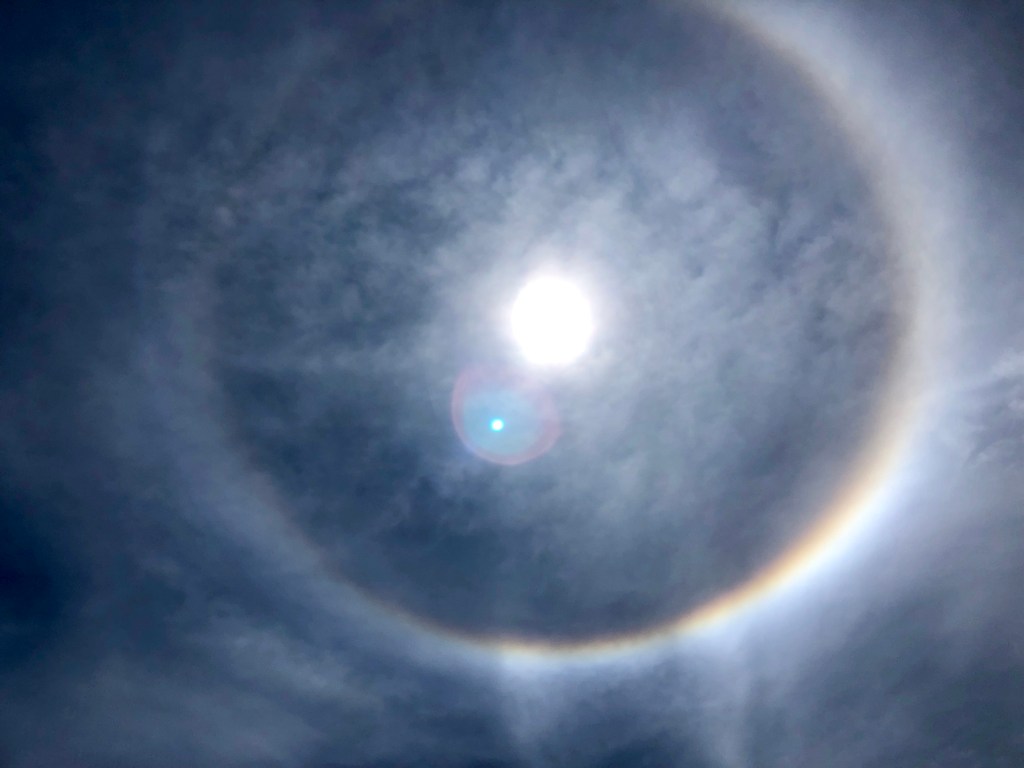 I don’t know what it signifies—when a rainbow circles the sun—but I figure it must be something good.