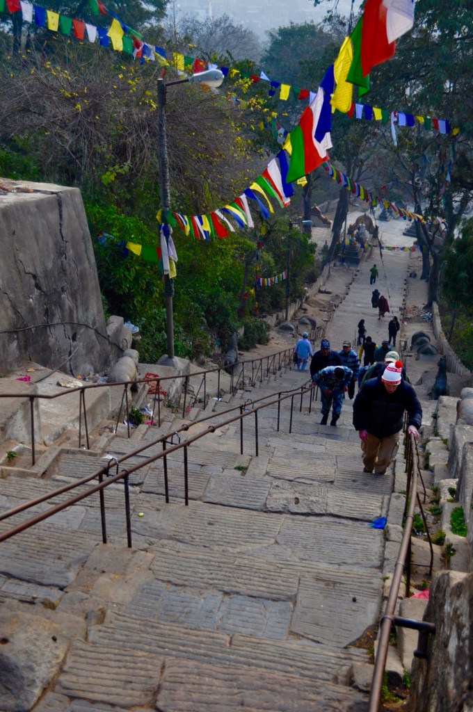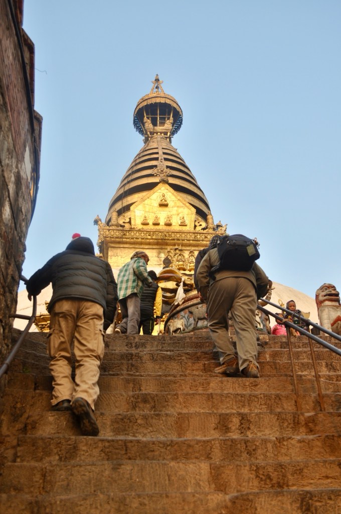 Each stage offers a different vantage and our task is to change and evolve. I am not the person who came here the last time, even less that person who came the first time. In that earlier stage, I wasn’t seeking in Nepal the meaning of life, and I wouldn’t have recognized it had it greeted me on the steps of Swyambunath, the Monkey Temple. Now I’m not looking for it because I know it’s not here. The wake up calls in my life have not come from any place in Kathmandu, dripping as it is in the wisdom of the ancients.