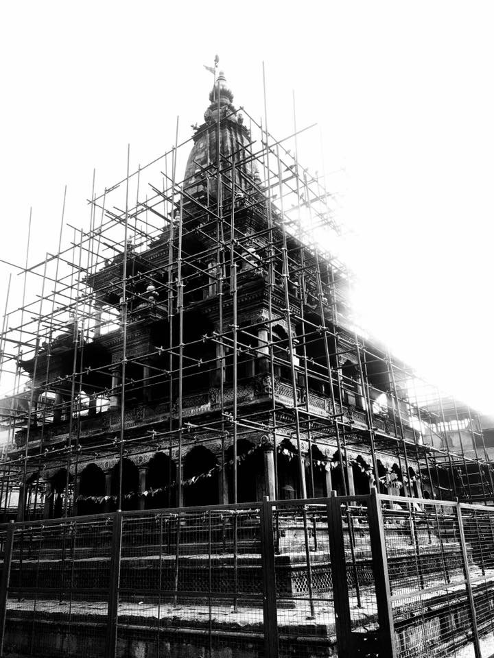 Craftsmen congregate at the pagodas in Durbar Square—reduced to piles of rubble following the 2016 earthquake—to resume the painstaking process of placing stone on stone.