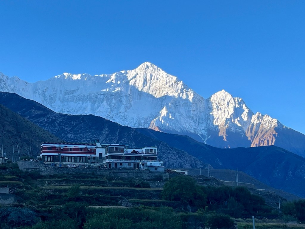 The far pavilions of Manaslu and the Langtang Himal stand watch, their bleached summits gleam in the sun’s first rays.