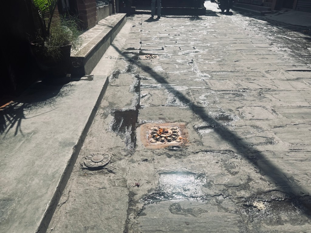 Garlands of marigolds and intricate wood carvings adorn ancient temples where elders perform their morning puja (ritual offering and prayer). Some do their puja on a small metal plate on their doorstep.