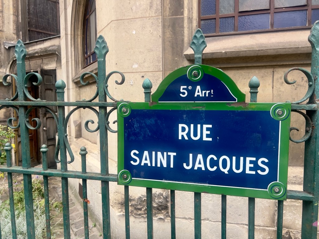 Rue Saint Jacques leads away from Tour Saint Jacques. Caroline and I followed it south, past the Sorbonne and Pantheon, before we circled back to visit the unveiling of post-fire Notre Dame Cathedral.