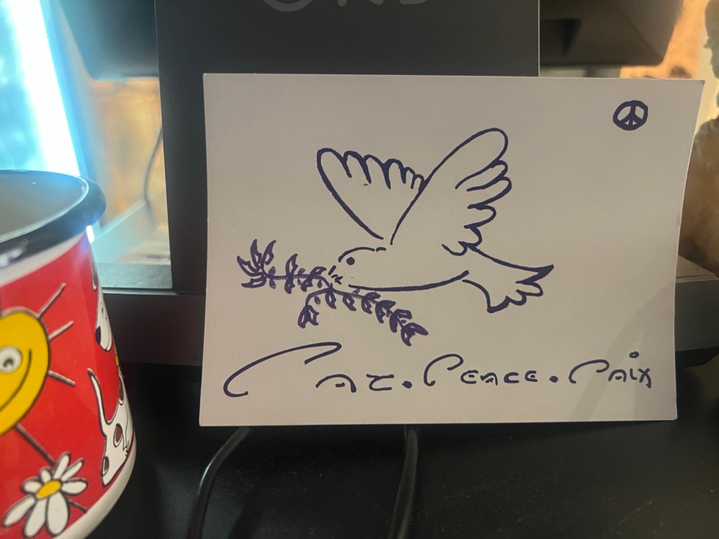 I tried to imagine other enchanted beings Abe might personify. He imparts mirth but also wisdom, so maybe a wizard. Or a magi, since he travels a lot. Or some character that embodies the idealism and thirst for adventure that is embodied by the Camino. He’s in Spain, so I’ll go with the Man of La Mancha, dreaming the impossible dream.